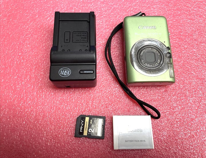 For those of you who may not know, I have a pretty decent camera collection. I’ve been obsessed with cameras since I was a kid, and it was about time that I picked one of these up. I haven’t taken any photos with her yet, but she’s a Canon Powershot SD1200 in this beautiful sage green color. I was originally perusing the hot pink ones on Ebay, but was sold on the green (likely because it’s my favorite color). I can’t wait to shoot with this!